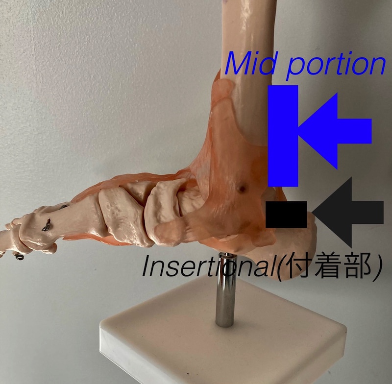Mid Portion(踵骨より2cm以上上部)、Insertion(踵骨付着部)