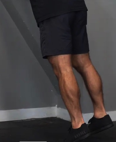 2−1、等尺性収縮(つま先立ちで止まる、座ってつま先で壁を押す等関節は動かさないで筋肉を収縮する)