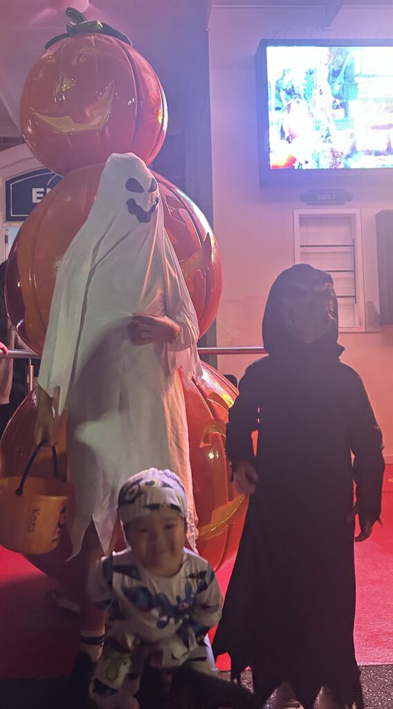 なんか話がちがう。でも2歳の娘はコスチュームきたらお菓子をもらえると学び、翌日も着る😭